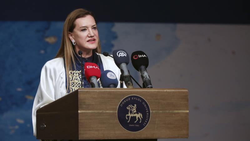 Üniversitelerin genç beyinlerin ve sağlıklı nesillerin yetiştirildiği merkezler olduğunu ifade eden Bakan Kurum, “Son 20 yılda, Cumhurbaşkanımızın liderliğinde; eğitime, öğretime, üniversitelerimize çok büyük yatırımlar yaptık. 2002 yılında 76 olan üniversite sayımızı 207'ye çıkardık. Ülkemizin dört bir yanında kurduğumuz üniversitelerle ihtisaslaşmayı her şehrimizde yaygınlaştırdık. Üniversitelerimiz dünyada da çok büyük başarılara imza atıyorlar. Dokuz Eylül Üniversitemiz de köklü geçmişiyle kendi gelenekleriyle eğitim kurumlarımız arasında seçkin üniversiteler arasında yer alıyor. DEÜ, ürettiği değerlerle, yetiştirdiği uzmanlarla hem İzmir’imizin hem ülkemizin bilim ve akademik hayatına çok önemli katkılar sağlamaya devam ediyor. Geniş eğitim kadrosuyla; İzmir'in dört bir yanında, onlarca enstitü ve fakülteleriyle, 50'yi aşkın uygulama ve araştırma merkeziyle eğitim ve öğretim anlayışını başarılı bir şekilde sürdürüyor. Nükhet Hocamız üniversite hakkında bir konu olduğu zaman gerek Cumhurbaşkanımız gerek Bakanlığımız nezdinde her türlü çalışmalarını sürdürüyor. Rektörümüz Nükhet Hotar başta olmak üzere geçmişten bugüne üniversitemize hizmet eden hocalarımıza, öğrencilerimize teşekkür ediyoruz” diye konuştu.