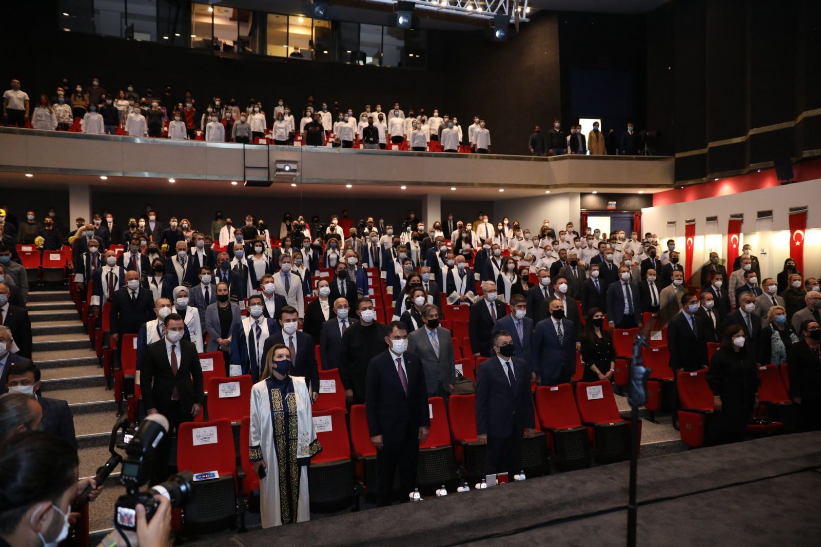 Dokuz Eylül Üniversitesi (DEÜ) 2021-2022 Akademik Yılı Açılış Töreni, Cumhuriyet Meydanı’ndaki Atatürk Anıtı’na çelenk konulmasının ardından Çevre ve Şehircilik Bakanı Murat Kurum ile Tarım ve Orman Bakanı Dr. Bekir Pakdemirli’nin katılımlarıyla Sabancı Kültür Sarayı’nda gerçekleştirildi. İzmir Valisi Yavuz Selim Köşger, İzmir Milletvekilleri, İzmir ve çevre illerin üniversite rektörleri, İzmir bürokrasisinin üst düzey temsilcileri ve DEÜ mensuplarının yer aldığı törenin açılışında İstiklal Marşı’nın okunmasının ardından DEÜ Tanıtım Filmi ve ‘Mezunlarımız Diyor ki’ videosu da gösterildi. Uluslararası Mevlana Vakfı Sema Topluluğu’nun Semazen Gösterimi yaptığı törende, fakültelerine dereceyle giren öğrencilere hediyeleri takdim edildi.