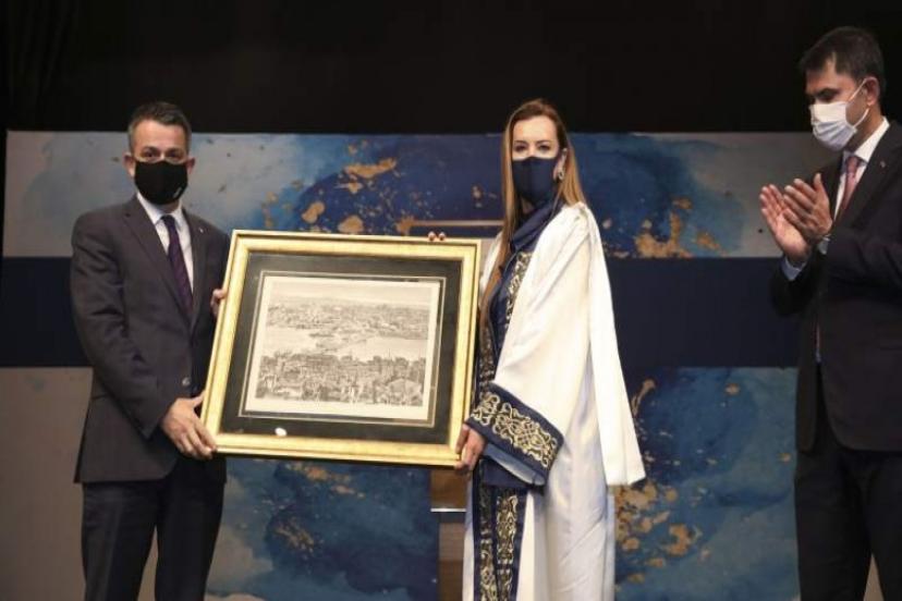 Törenin ardından Rektör Prof. Dr. Nükhet Hotar, Çevre ve Şehircilik Bakanı Murat Kurum ile Tarım ve Orman Bakanı Dr. Bekir Pakdemirli’ye DEÜ Güzel Sanatlar Fakültesi Dekanı Prof. Dr. Hacı Yakup Öztuna’nın özel koleksiyonundan gravür çalışma hediye etti. Hotar ayrıca, Uluslararası Mevlana Vakfı Başkan Vekili ve Mevlana Celaleddin Rumi'nin 22. kuşaktan torunu Esin Çelebi Bayru'ya da hediye verdi.