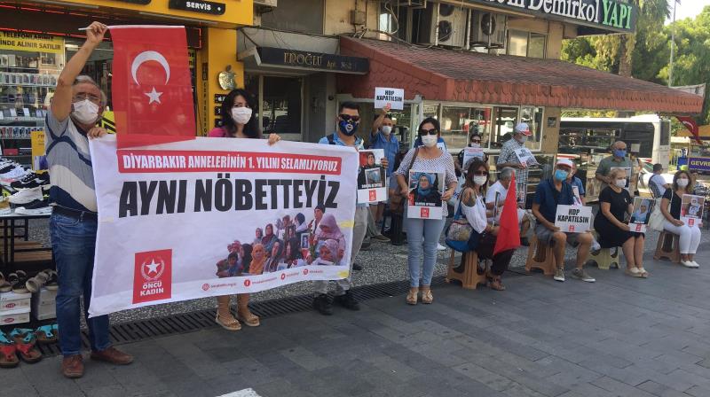 İzmir’de başta Konak olmak üzere; Karşıyaka, Bayraklı, Bornova, Urla, Buca, Narlıdere ve Torbalı’da oturma eylemleri düzenledi. Konak Vatan Partisi İlçe Başkanlığı önünde konuşan Öncü Kadın İzmir İl Başkanı İncisel Aytar, “Tam bir yıl önce bugün Diyarbakır’da HDP İl binası önünde evlatlarını PKK/HDP’den isteyen annelerin ‘Başlarım sizin Kürdistan davanıza!’ feryadı ile tüm Türkiye sarsıldı” diyerek evlat nöbeti tutan annelerin haklı feryadını bir kez daha dile getirdi.