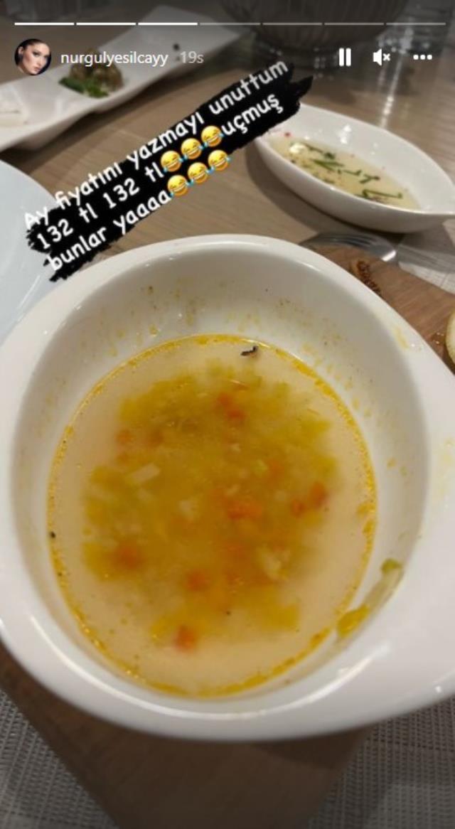 Yemek yemek için bir mekana giden oyuncu, bir kase çorba istedi. Günlük hayatından kareleri sosyal medya hesabından paylaşan oyuncu, bir kase çorbanın 132 TL olduğunu öğrenince yaptığı paylaşımla sitem etti. Instagram hesabından çorbanın fotoğrafını paylaşan Yeşilçay, "Ay öyle bir yerdeyiz ki of çok iyi. Çorba ölmeden önce. Ay fiyatını yazmayı unutmuşum 132 TL. Uçmuş bunlar ya" notunu yazdı.