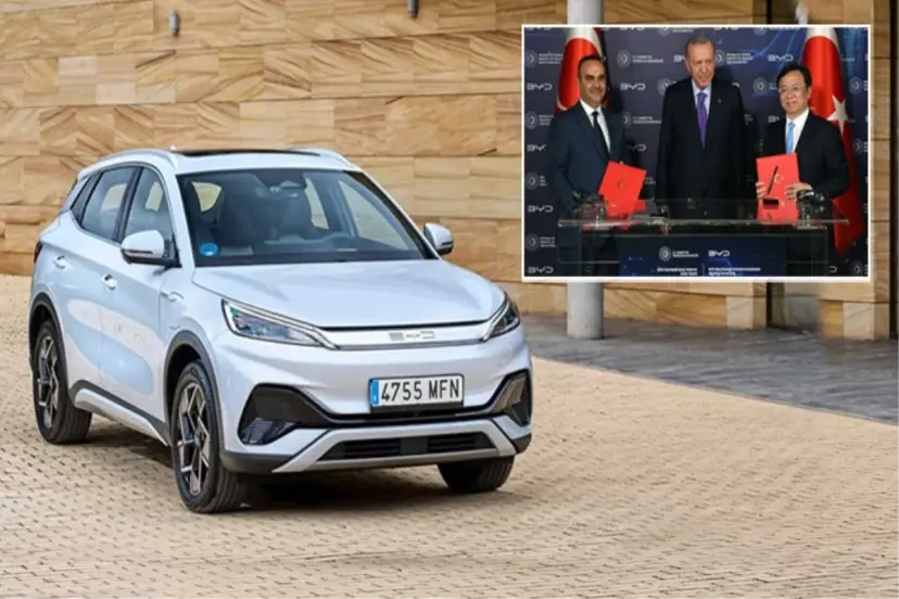 Dünyanın en büyük elektrikli araç üreticisi Çinli BYD, Türkiye'ye yaklaşık 1 milyar dolarlık yatırım yapacak. BYD firması ile Sanayi ve Teknoloji Bakanlığı arasında imzalanan anlaşma törenine Cumhurbaşkanı Erdoğan da katıldı. Yıllık 150 bin araç kapasiteli otomobil üretim tesisi ile sürdürülebilir mobilite teknolojilerine yönelik AR-GE merkezi kurulmasını içeren anlaşma kapsamında, tesisin 2026 sonunda üretime başlaması ve 5 bin kişiye doğrudan istihdam sağlaması bekleniyor.