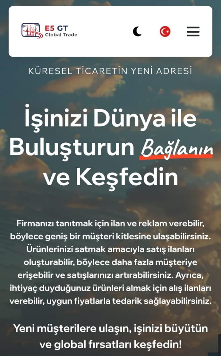 Türkiye mobilya konusunda var olan pazar payını genişletmeli ve yeni pazarlar bulmalıdır. E5 Global Trade olarak bu konuda üreticilerimize destek vermekteyiz. Platformumuz ve web sitemiz aracılığı ile buna destek vereceğiz. Sitemize kazandırdığımız çevirili sohbet sekmesi sayesinde hiç kimsenin, hiçbir üreticinin dil sorunu kalmadı. Üreticiler, toptancılar, tedarikçiler, alıcılar, satıcılar, sektörde taşeron olarak iş yapan herkesin kendi dillerinde yazdıkları mesajlar karşındakinin diline tercüme edilecek ve çıkacak, rahatlıkla bir çok dilde ticaret yapabilecekler. Bünyesinde daha bir çok yenilik barındıran E5 Global Trade dünyada benzeri olmayan bir yazılım ve ticaret platformudur."