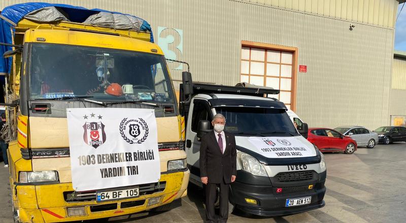 Milletimizin her sıkıntılı sürecinde hemen harekete geçmek sorumluluğunu duyduklarını belirten 1903 Beşiktaş Dernekleri Birliği bünyelerindeki Türkiye ve Avrupa dernekleri ile bir TIR ve iki büyük kamyonet dolusu termal içlik, iç çamaşırı, bebek kıyafetleri, çorap gibi depremzedelerin acil ihtiyaç duydukları malzemeleri hızla Izmir'e ulaştırdı.