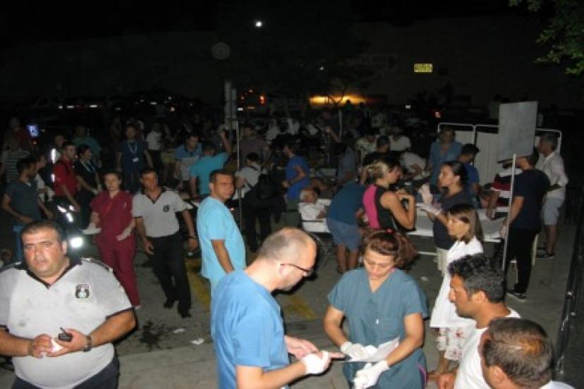 Panikle balkondan atlayan, dışarı çıkmaya çalışırken yaralanan vatandaşlar ise Bodrum Devlet Hastanesi’ne akın etti. Hastanenin bahçesi yaralılarla dolarken, acil servisin tavanındaki kaplama malzemelerinin bir bölümü çöktü. Acil servis boşaltılırken, doktorlar yaralılara bahçede müdahale etti. Milas'ta da deprem sonrasında balkondan atlayan 10 kişinin yaralandığı öğrenildi. Marmaris Devlet Hastanesine ise yaşadıkları panikle hafif yaralanan 15 kişinin başvurdu.