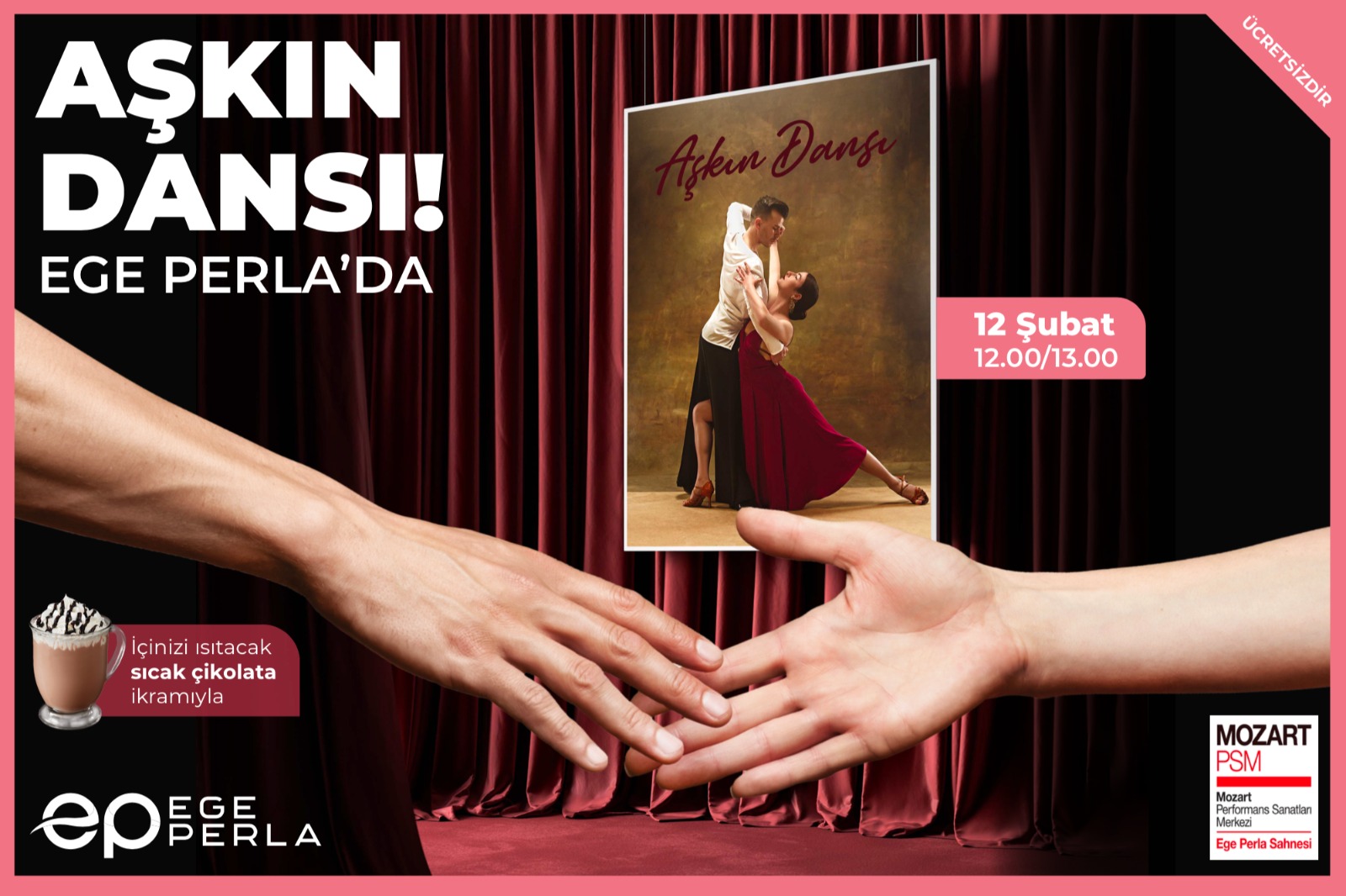 12 Şubat’ta, Mozart PSM işbirliğiyle profesyonel dansçıların gerçekleştireceği romantik tango gösterisi ziyaretçilere Sevgililer Günü ruhunu hissettirecek. Saat 12.00 ve 13.00’da ücretsiz sahnelenecek ‘Aşkın Dansı’ etkinliğinde ziyaretçilere sıcak çikolata ikram edilecek.
