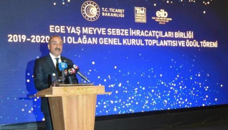 EGE Yaş Meyve Sebze İhracatçıları Birliği (EYMSİB) Yönetim Kurulu Başkanı Hayrettin Uçak, 2020 yılında en fazla ihracat yapan firmalara ödüllerinin verildiği törende, pandemi önlemlerinin getirdiği yaptırımlara rağmen birliğin 54 yıllık tarihinde ilk defa 1 milyar dolar ihracat barajını aştığına dikkati çekip, 2021 yılı sonunda yeni bir ihracat rekoru kıracaklarını belirtti.