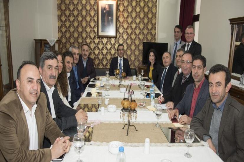 Karşıyaka Kaymakamı Sadettin Yücel ve İlçe Milli Eğitim Müdürü Mustafa İslamoğlu Karşıyaka’da bulunan eğitim işkolundaki sendika temsilcileri ile bir araya geldi.