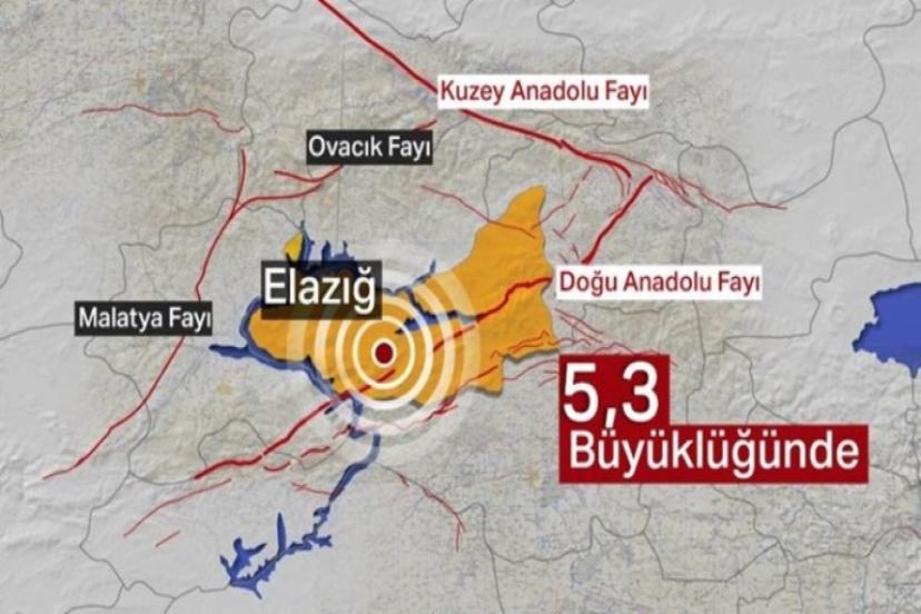Afet ve Acil Durum Yönetimi Başkanlığı'nın (AFAD) internet sitesinde yer alan bilgiye göre, saat 09.37'de merkez üssü Elazığ olan 5,3 büyüklüğünde deprem kaydedildi.