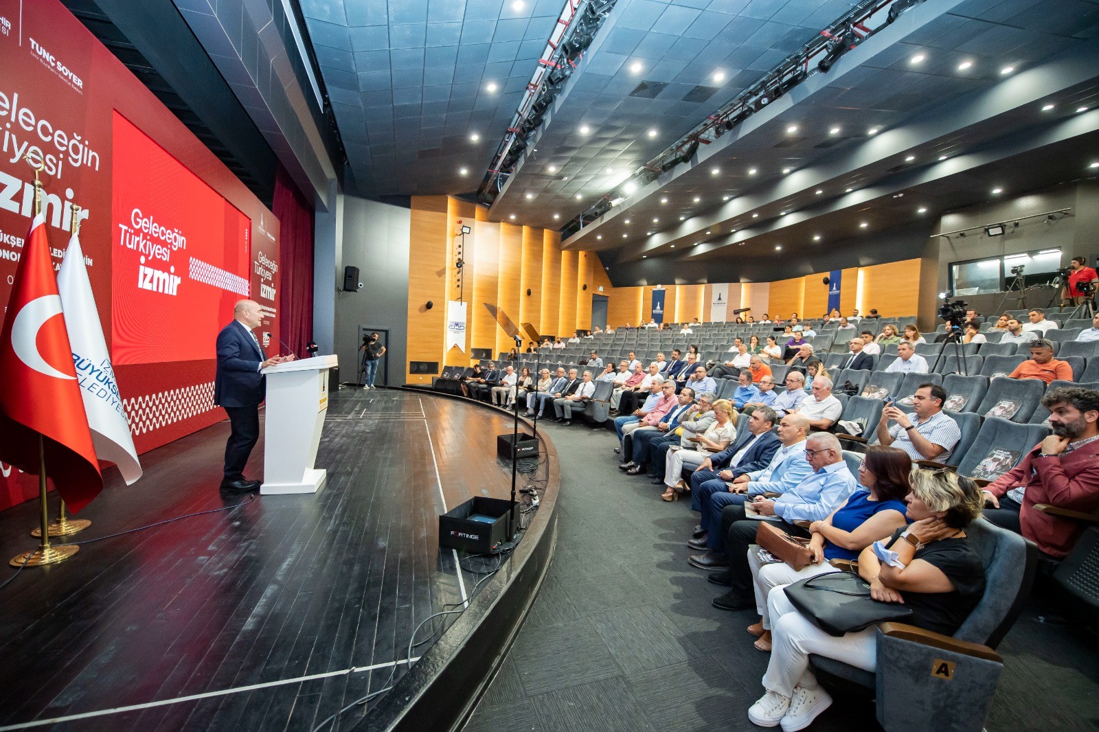 Başkan Tunç Soyer konuşmasında Türkiye’nin kaderine yön veren İzmir İktisat Kongresi’nin, Türkiye’nin ikinci yüzyılında yeniden İzmir’de toplanacağının müjdesini verdi. İktisat Kongresi’nin sadece Türkiye için değil insanlık tarihi için çok büyük bir öneme sahip olduğunu ifade eden Başkan Soyer, “İktisat Kongresi, daha cumhuriyet kurulmamışken bir devletin iktisat politikalarını belirlemek için toplandı. İktisat Kongresi’ni düzenleyenler, ekonomi politikalarına devletin müdahalesinin nasıl olması gerektiğine karar verdi. Mustafa Kemal Atatürk, yüz yıl önce İktisat Kongresi’ni 4 ayrı toplum katmanının temsilcilerini bir araya getirmiş. Tüccarlar, sanayiciler, işçiler ve çiftçiler. Bin 200 delege, 17 Şubat – 4 Mart tarihleri arasında nasıl bir toplum hayal ettiklerini, nasıl bir ekonomi istediklerini müzakere etmişler. Biz bu 4 toplum katmanını aynı sayıda temsilciyle bir araya getireceğiz. 1 Ağustos’tan itibaren bu toplum katmanları 3 ay boyunca müzakere edecekler. 5 soruyu biz, düzenleme heyeti olarak onlara sunacağız. 5 soruyu da onların belirlemesini isteyeceğiz. 10 sorunun cevabını 3 ayın sonunda ortaya koymalarını isteyeceğiz. Hangi düzenlemeleri yapabileceklerini belirleyecekler. İkinci kısımda ise 4 ayrı masa, 4 ayrı başlıkta, 4 ayrı toplum grubundan gelen konuları müzakere edecek. Birinci masa ‘Birbirimizle helalleşiyoruz’ masası, ikinci masa ‘Doğamızla helalleşiyoruz’ masası, üçüncü masa ‘Geçmişimizi hatırlıyoruz’ masası ve dördüncü masa ‘Geleceğimizle buluşuyoruz’ masası. Adına şimdilik Yüksek İstişare dediğimiz kurul, bütün bu manifestoları ve bildirgeleri 17 Şubat - 4 Mart tarihleri arasında masasına koyuyor ve buradan gelecek yüzyılın iktisat politikaları neler olmalıdır bunları ortaya koyuyor. Biz de bunları tüm siyasal partilerin tüm STK’ların ve talep eden herkesin önüne koyuyoruz. Özetle iktisat kongresini gerçekten ikinci yüzyılın iktisat politikalarının tartışıldığı ve aydınlattığı bir buluşmaya dönüştürmek istiyoruz” diye konuştu.