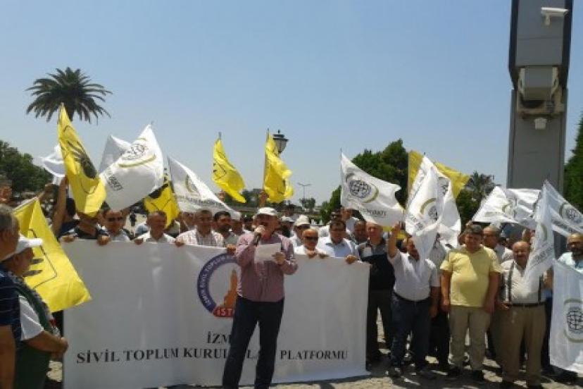 Seçilmiş Cumhurbaşkanı Mursi, Müslüman Kardeşler Teşkilatı Başkanı Muhammed Bedii, yardımcısı Hayrat ŞATIR, Hürriyet ve Adalet Partisi Genel Başkanı Muhammed Saad ve Yusuf El Kardavi idama mahkum edilenlerin başında 17 Haziran 2012 de %52 oy alarak seçilen Cumhurbaşkanı Mursi'ye yapılan darbeye alkış tutan alçaklar ve kuklaları bilsin ki artık biz oynanan tiyatronun farkındayız. Darbe lideri Sisi'yi de, ona komuta eden Batıyı da, emperyalist zihniyeti de tanıyor, oynanan oyunu bozmak, onlarla hesaplaşmak için çalışıyoruz. İnanıyoruz ve diliyoruz ki, Sisi tiyatrosu oynayanların başına geçecek ve bu İslam dünyasında oynanan son oyun olacak. En azından Türkiye’de bir ağacın kesilmesi ya da Twitter’ın kapatılmasına gösterdiği sertlikte Mısır’daki idamlara eleştiri getirmesi beklenen Batılı ülkeler, ikiyüzlü yaklaşımları ile bir kez daha sınıfta kalmıştır. Demokratik değerler üzerine inşa edildiği iddiasındaki Batı, Mısır’da darbe olduğunda ses çıkarmadığı gibi, üstelik son Almanya örneğinde olduğu gibi darbe lideri Sisi’yi utanmadan ülkelerine davet etmiş, darbecilere siyasi ve ekonomik kredi açmış ve açtırmış, Müslümanlar söz konusu olduğunda demokratik değerleri çiğneyebileceğini ve ikiyüzlülüğünü göstermiştir. Bugün kendimizi bir tiyatro gösterisinin içinde buluyoruz. Senaryosu Batı düşüncesinin ürünü olan bu tiyatro , insan haklarını, demokrasiyi elinin tersiyle iterek sahne almaya devam ediyor. En acı tarafı da bu tiyatronun bazı sözüm ona Müslümanlar tarafından da alkışlanıyor olmasıdır. Kahire'deki kukla mahkeme karar veriyor, Batı dünyası açık ve örtülü destek veriyor. Mısır içinden ve dışından kimi Müslümanlar da bu desteğe katılıyor veya seyirci kalıyor. Kukla Mısır müftüsü idamlara onay veriyor, Selefiler idamlara sessiz kalıyor. "Bir insanı haksız olarak öldüren, tüm insanlığı öldürmüş gibidir." ilkesini ortaya koyan bir dinin mensupları bu ölümlere destek de çıkamaz, seyirci de kalamaz. "Zulme rıza zulümdür." Firavunların insan ruhunu köleleştiren zihniyeti ilahi bir emirle tarihin karanlık sularına gömülmüştü. Fakat bu zihniyet geçtiğimiz yüzyılın başında altın çağını yaşayan kapitalist zihniyet tarafından hortlatıldı. Bugün önümüzdeki iki yüzyılı etkileyebilecek bir zaman dilimindeyiz. Bugüne kadar İslam’a olan düşmanlıklarını gizleyenler, artık bütün kinlerini açıkça söyleyebilmektedirler. Buna karşı, ya Müslümanlar biraraya gelip Allah'ın yardımıyla bir direniş hattı oluşturup hakkın ve adaletin egemenliğini sağlayacak, ya da dünyaya kaos ve gözyaşı hakim olacak. Şuna inanıyoruz: BAŞKA BİR DÜNYA MÜMKÜN. Bu nedenle güçlünün haklı sayıldığı değil, haklının güçlü olduğu bir dünyanın ikamesi için çalışıyoruz. Biz İzmir Sivil Toplum Kuruluşları olarak bugüne kadar olduğu gibi Mısır'da halkın seçtiği Mursi'nin yanındayız. Mursi, Mısır'ın meşru Cumhurbaşkanıdır. Zorbalıkla işbaşından uzaklaştıran Sisi'ye haddi bildirilmeli ve Mursi derhal işbaşına geçmelidir. Sicili karanlık olan BM, ABD, AB, İİT gibi kuruluşlardan bu konuda bir adım beklemiyoruz. Mısır halkı ülkesine ve başkanına sahip çıkacak ve kendi işini kendisi halledecektir. Onlara her türlü desteği vermeye hazır olduğumuzu bir kez daha haykırıyoruz.