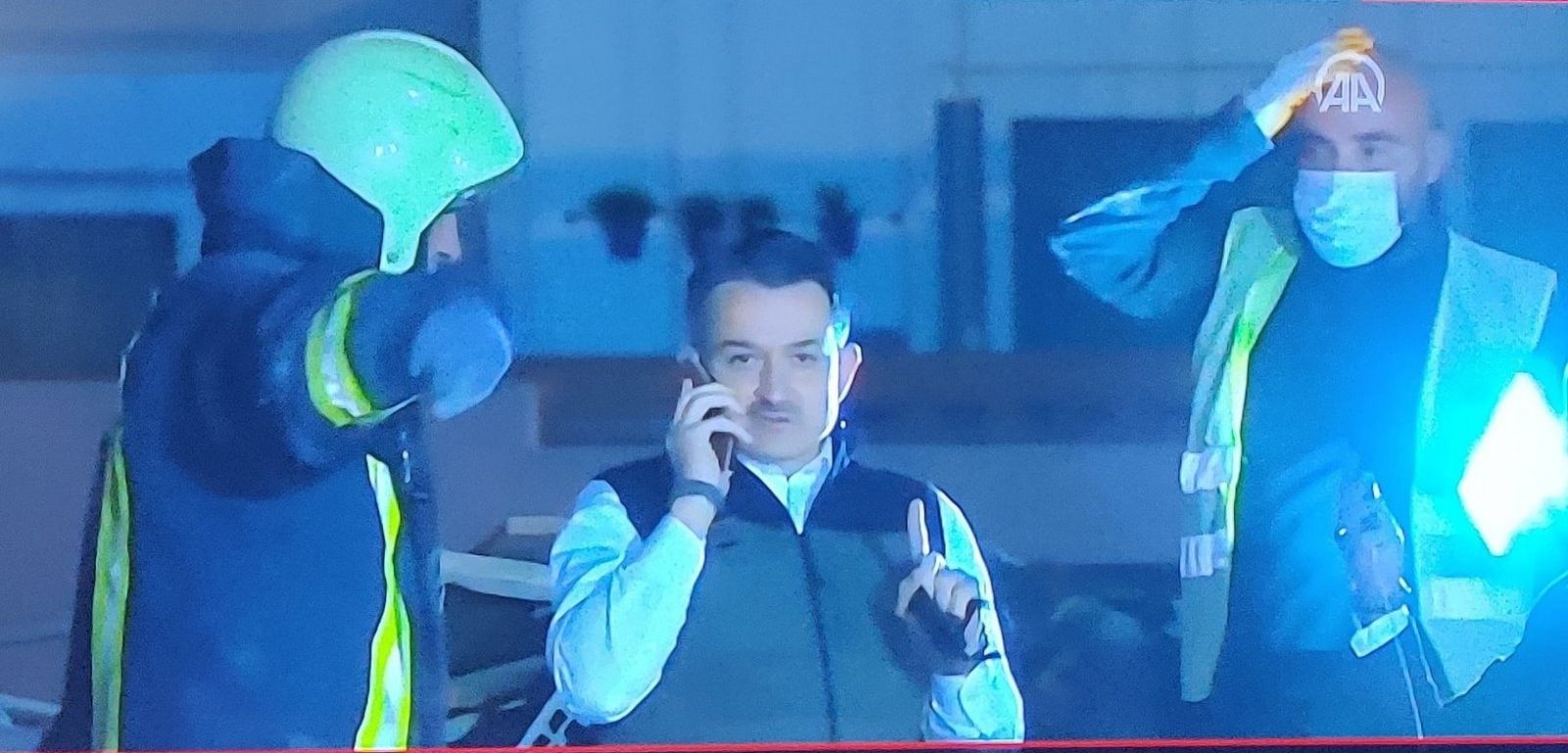 Depremin ardından Cumhurbaşkanı Recep Tayyip Erdoğan'ın talimatıyla incelemelerde bulunmak üzere bölgeye giden Tarım ve Orman Bakanı Bekir Pakdemirli, enkaz altındaki vatandaşla telefonda görüştü.