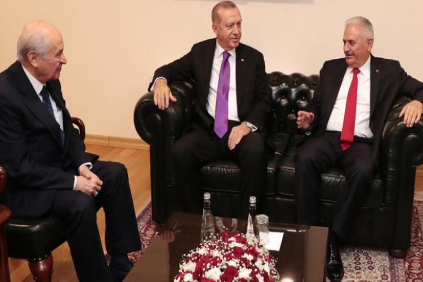 Cumhurbaşkanı Recep Tayyip Erdoğan ile MHP Genel Başkanı Devlet Bahçeli'nin TBMM'de bir araya geldiği öğrenildi. İki liderin TBMM Başkanı Binali Yıldırım'ın daveti üzerine buluştuğu belirtildi. Yıldırım'ın CHP Genel Başkanı Kemal Kılıçdaroğlu'nu da davet ettiği ancak Kılıçdaroğlu'nun programını gerekçe göstererek davete katılmadığı ifade edildi. Davete ayrıca İYİ Parti Grup Başkanvekili Ahad Andican'ın da katıldığı öğrenildi.