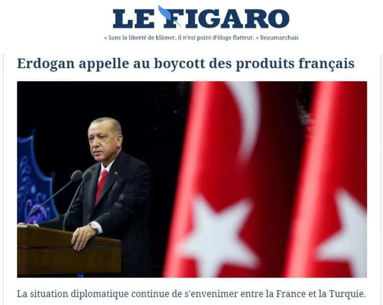 'Erdoğan Fransız ürünlerine boykot çağrısı yapıyor' başlığını atan Le Figaro gazetesi, Türkiye ve Fransa arasındaki diplomatik krizin gittikçe fenalaştığı yorumunu yaptı.