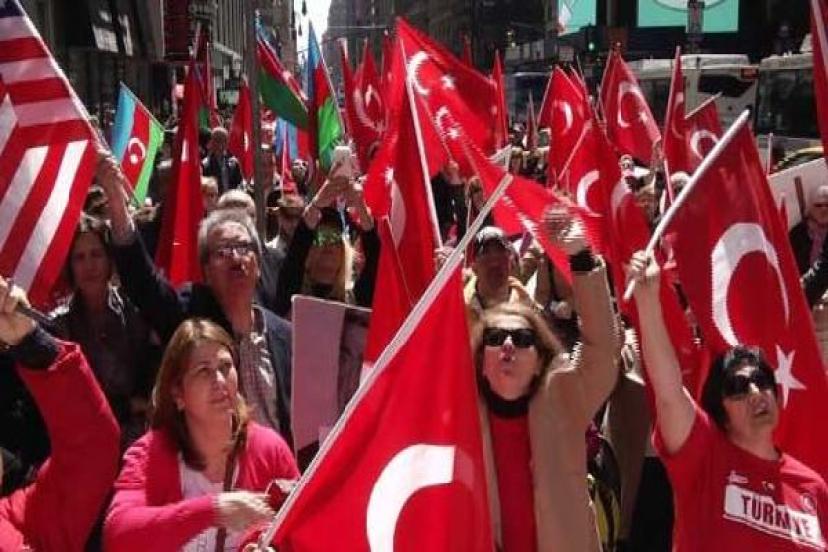 1915 olaylarına ilişkin Ermeni iddiaları, New York'ta, Times Meydanı'nda düzenlenen bir gösteri ile protesto edildi.