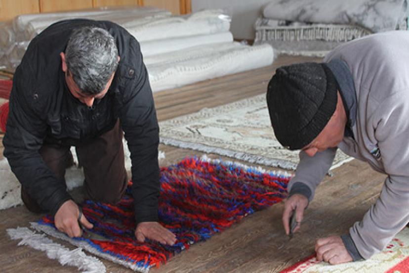 Manisa'nın Demirci ilçesinde halılara eskitme işlemi yaparak renklerini solduran Hüseyin Yanar, çeşitli ülkelerden sipariş alıyor