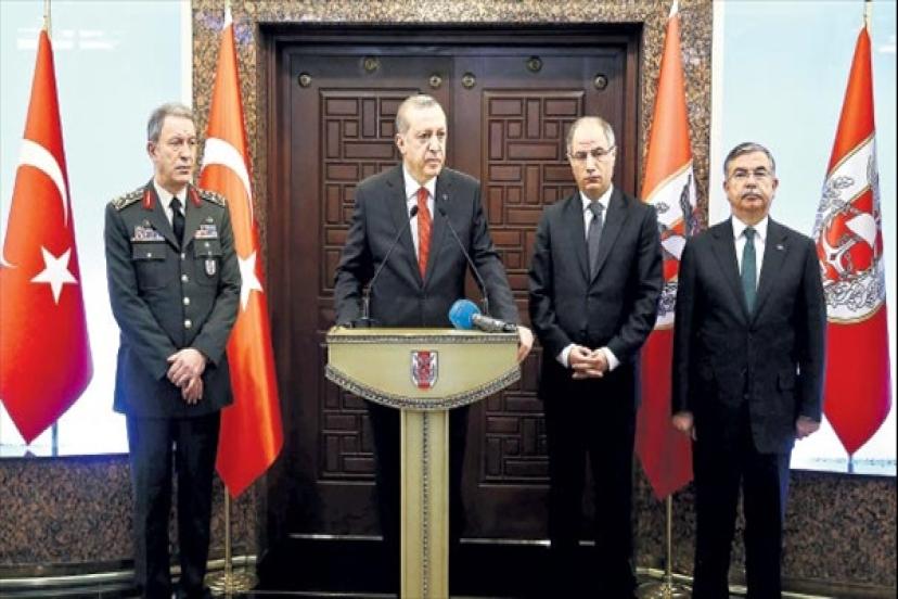 “Türkiye’de son dönemde cereyan eden terör eylemleri karşısındaki operasyonlarımız ciddi manada neticesini vermektedir. Fakat işin menşeine, kökenine indiğimizde burada ulusal olmaktan öte ulusal ve uluslararası bir terör boyutuna bu işin ulaştığını görüyoruz. Gerek PKK gerekse PYD’nin her ne kadar başında olanlar bu işin kendileriyle alakalı olmadığını söylüyorlarsa da bu iş son olarak İçişleri Bakanlığımızın da tüm istihbarat örgütlerimizin de elde ettiği bilgilerle, belgelerle bunlara ait olduğu ortaya çıkmış vaziyettedir. Tabii artık zincir sökülmeye başlamıştır ve 14 kişi şu anda gözaltındadır. Bunun gerisi de gelecektir.” ‘Dış uzantılı’Erdoğan, ‘Bugüne kadar Suriye’nin kuzeyindeki PYD ve YPG ile bağlantısını Türkiye’deki PKK ile ne denli güçlü olduğunu söylediğimiz halde inandıramadığımız dostlarımızın herhalde bu olay karşısında bu işi daha iyi anlamalarına bu vesile olacaktır.” diye konuştu.