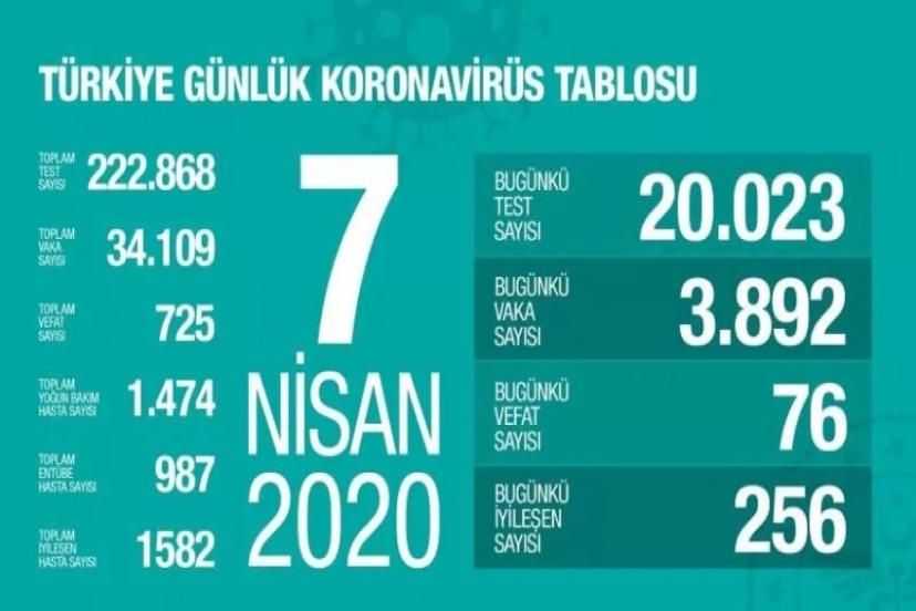 Bugün 20 bin 23 test yapıldı 76 vatandaşımızı daha kaybettik. 256 vatandaşımız ise şifa buldu.