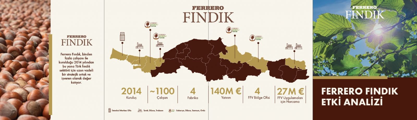 Ferrero Fındık’ın bini aşkın doğrudan istihdama ek olarak, üretim faaliyetleri, bu faaliyetleri sürdürmek için tedarik zinciri operasyonları ve sonuçta hane halkı gelir ve harcamalarındaki artışla, ekonomide doğrudan, dolaylı ve tetikleme etkilerin toplamı olarak 20 bini aşkın istihdam ürettiği belirlendi. Şirket doğrudan vergilerine ek olarak, yarattığı dolaylı ve tetiklenmiş faaliyetleriyle Türkiye kamu bütçesine yaklaşık 70 milyon avro ek vergi geliri oluşturdu.