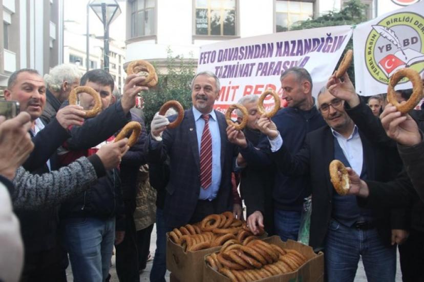 Gazeteci Osman Şahin FETÖ suçlamasıyla kazandığı 400 lira tazminatla halka ücretsiz simit dağıttı