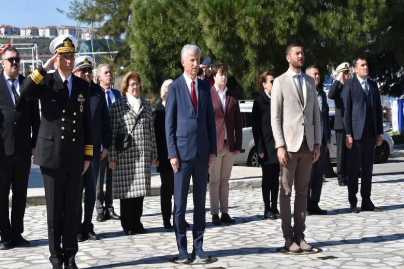 Tören kapsamında, Foça Cumhuriyet Meydanındaki Atatürk Anıtına; Foça Kaymakamlığı, Garnizon Komutanlığı ve Belediye Başkanlığı saygı çelenkleri konuldu.