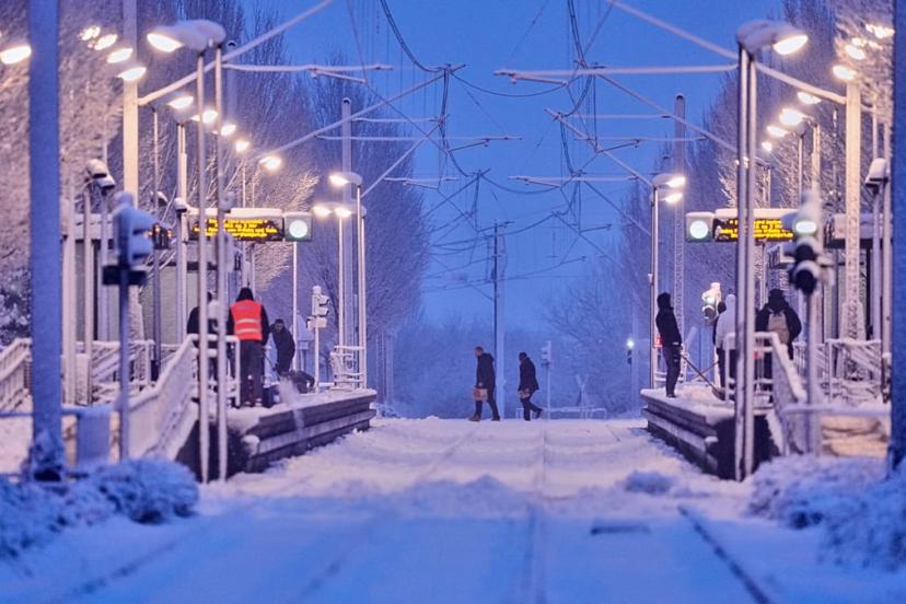 Perşembe günü Almanya'nın Frankfurt kentinde kar, sokakları beyaz örtüyle kaplarken kış koşulları hava trafiğini aksattı.