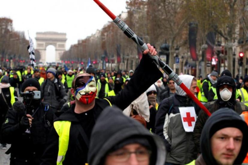 Fransa'da akaryakıt zamlarına ve ekonomik şartların kötüleşmesine tepki olarak 17 Kasım'da başlayan ancak daha sonra Macron yönetimine yönelik öfkeye dönüşen "sarı yelekliler"in eylemleri, ülkede son yılların en şiddetli protestosu haline geldi.