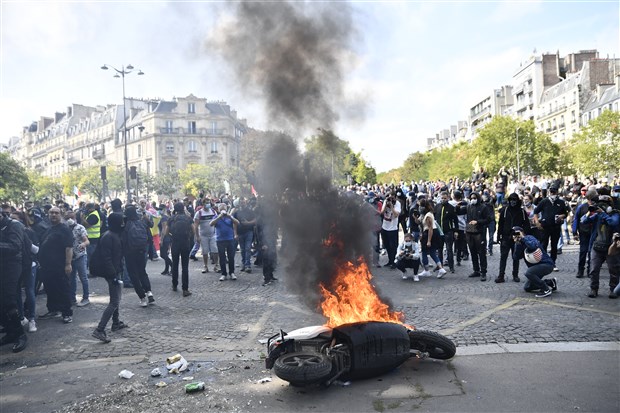 Paris’te başlayan protestolarda göstericiler, Wagram Meydanı’nda toplandı ve yürüyüşe başladı. Yer yer polis ile göstericiler arasında arbedeler yaşanırken 54 kişinin gözaltına alındığı belirtildi.