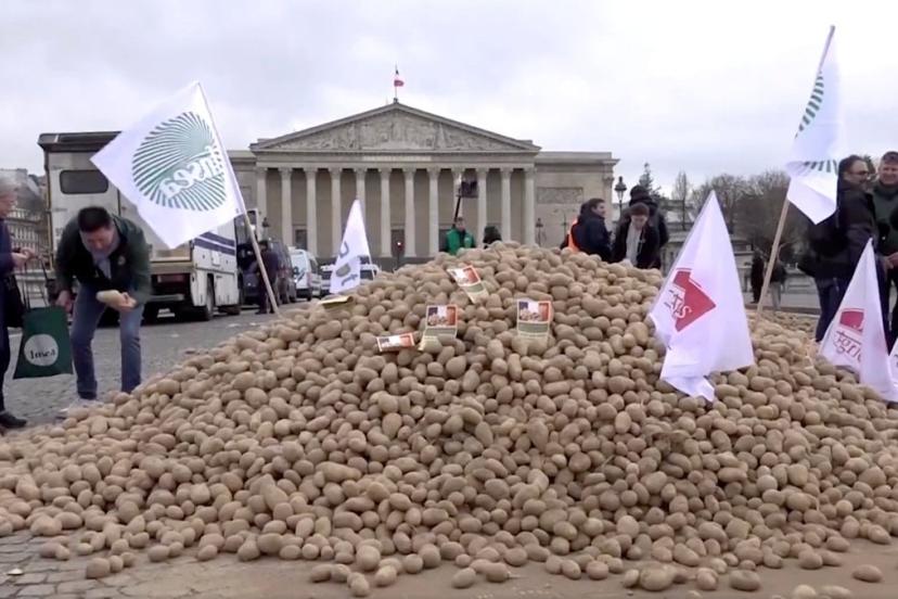 Fransız çiftçiler, Ulusal Meclis'in önüne 30 ton patates döktü
