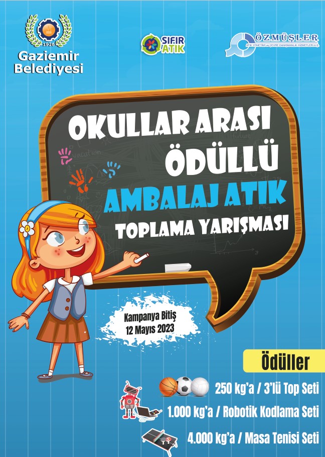 Çocuklara çevre sevgisi ve sıfır atık bilinci aşılamak için okullarda geri dönüşüm konusunda eğitimler veren Gaziemir Belediyesi, öğrenciler için özel bir yarışma düzenliyor. Belediyenin, 2022-2023 eğitim öğretim yılında okullarda düzenlediği geri dönüşüm atığı toplama yarışması başladı. Ambalaj atığı, elektronik atık ve bitkisel atık yağ olmak üzere üç kategoride düzenlenecek yarışma, 12 Mayıs’a kadar devam edecek. Yarışma kapsamında 250 kilograma kadar ambalaj atığı toplayan okullara 3’lü top seti, bin kilogram toplayanlara robotik kodlama seti, 4 bin kilogram toplayanlara ise masa tenisi seti armağan edilecek. Elektronik atık kategorisinde ise 200 kilogram atık toplayanlar 3’lü top seti, 500 kilogram atık toplayanlar robotik kodlama seti, bin kilogram atık toplayanlar masa tenisi seti ödülünün sahibi olacak. Bitkisel atık yağ toplama yarışmasında ise 100 kilograma kadar atık yağ toplayanlar 3’lü top seti, 250 kilograma kadar atık yağ toplayanlar robotik kodlama setiyle ödüllendirilecek. Kampanya kapsamında okullarda toplanan atıklar, lisanslı firmalar tarafından alınarak geri dönüşüm endüstrisine kazandırılacak.