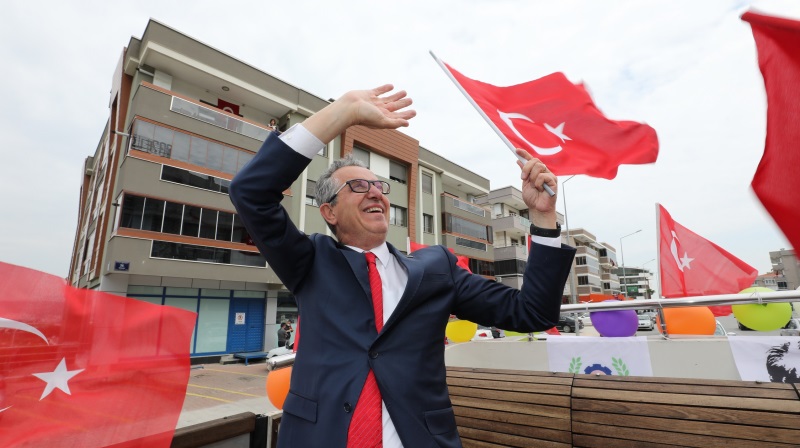 Gaziemir’de, 23 Nisan Ulusal Egemenlik ve Çocuk Bayramı’nın yüzüncü yılı bandonun çaldığı marşlar eşliğinde balkonlardan coşku ve gururla kutlandı. Gaziemir Belediyesi’nin düzenlediği etkinlikte Pozitif Bando, üstü açık otobüsle ilçenin dört bir yanında dolaşarak marşlar çaldı. Bando ekibiyle birlikte ilçeyi dolaşan Gaziemir Belediye Başkanı Halil Arda eşi Deniz Arda ile birlikte vatandaşların bayramını kutladı.