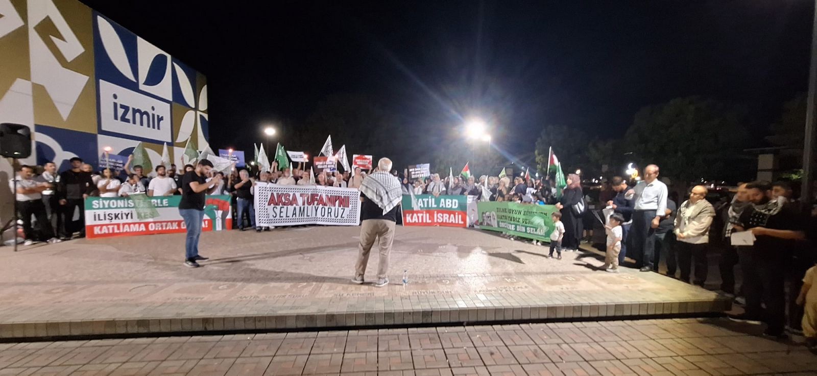 Özgün-Der Yönetim Kurulu Üyesi Mehmet Gültekin ise konuşmasını “Buradan Konak meydanından haykırmak istiyorum. Ey katil Netanyahu ve terör çetesi… Korkunun ecele faydası yoktur. Er veya geç İsrail denen çete devletinin yıkılışını ve Ortadoğu coğrafyasının size mezar olacağının kutlamasını daha gür bir şekilde kutlayacağız Allah’ın izniyle!” sözleriyle tamamladı.