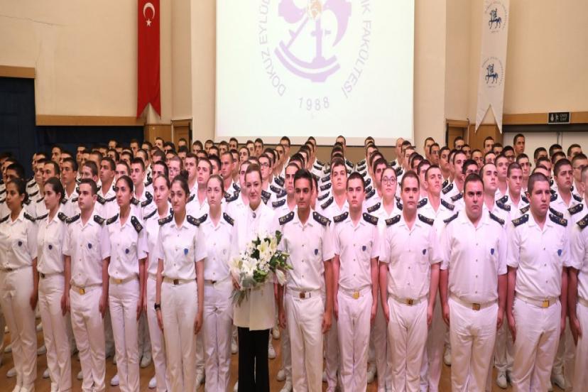 Geleceğin denizcileri Dokuz Eylül Üniversitesi Denizcilik Fakültesi’nde düzenlenen yemin ve bröve töreninde mesleklerine ilk adımını attı. Törene katılan Rektör Prof. Dr. Nükhet Hotar, “Bugün, son derece özel ve pek çok insanın imrenerek baktığı bir meslekte ilk kariyer adımlarınızı atıyorsunuz. Bundan sonra alacağınız eğitimler, üstleneceğiniz sorumluluklar, getirileceğiniz görevler sizlerin çok daha iyisini yapmanıza vesile olacaktır” diye konuştu.