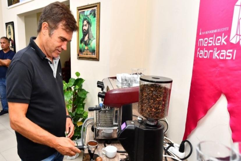 Son dönemde pazar ayı artan kahve sektörü için barista yetiştiren İzmir Büyükşehir Belediyesi Meslek Fabrikası'ndan eğitim alanlar arasına Türk futbolunun efsanelerinden Feyyaz Uçar da katıldı.