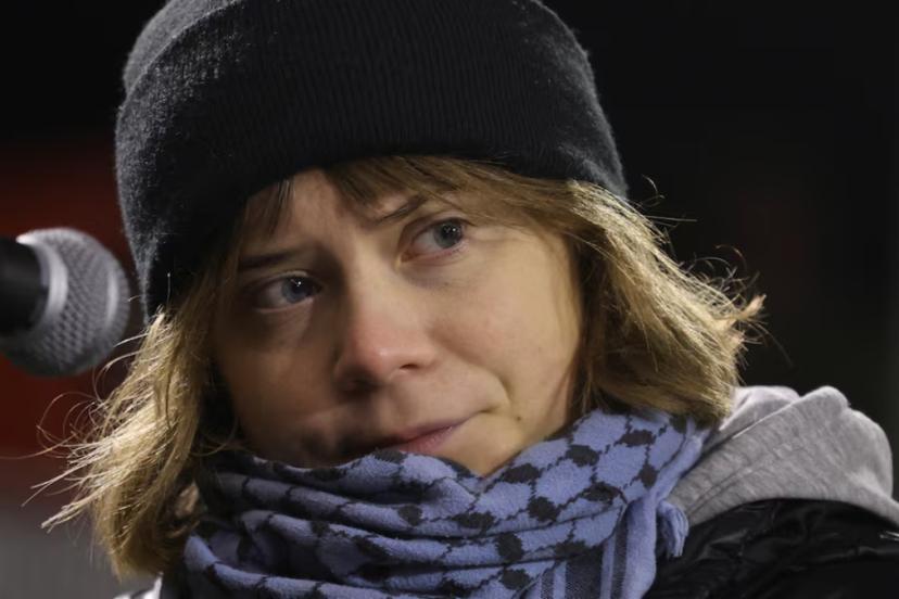 Thunberg, Filistin Eylemi grubuna desteğini teyit ederken "Filistin Eylemi grubu mahkumlarını destekliyorum. Soykırıma karşıyım" yazılı pankart açmış, bunun üzerine polis Thunberg'e müdahale ederek ünlü aktivisti gözaltına almıştı.