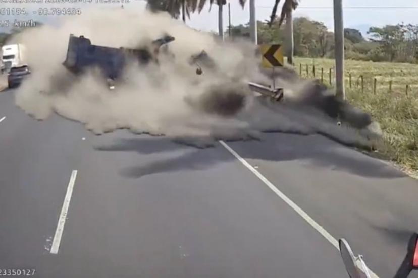 Yolda seyir halindeki bir aracın kamerasına yansıyan görüntülere göre; bölgede ağır bir yük kamyonu, çoklu araç kazasına neden oldu.