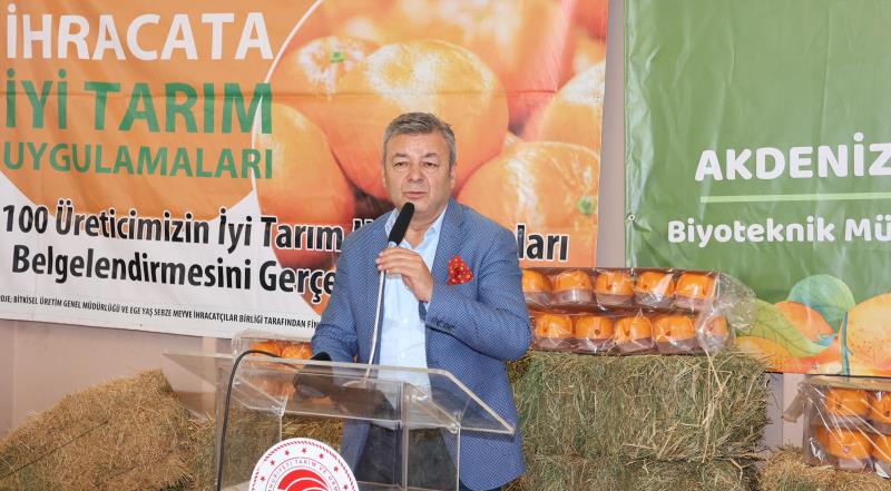 Ege Yaş Meyve Sebze İhracatçıları Birliği Başkanı Hayrettin Uçak, “Öncelikle geçtiğimiz bir yıl boyunca biyoteknik mücadele konusunda gösterdikleri hassasiyet ve yoğun emekleri için başta Tarım ve Orman İl Müdürümüz Mustafa Özen’e, değerli ilçe müdürlerimize, kaymakamlarımıza, bölge vekillerimize, Tarım ve Orman Bakanlığı bünyesindeki teknik personele ve üreticilerimize teşekkür ediyorum. Bizim üretim ve ihracatta başarı için iki temel şartımız var. Kalıntısız üretim ve kaliteli üretim. Dünya narenciye üretiminde 8.sırada, ihracatında ise 4.sırada yer alıyoruz. 2022 yılında Türkiye’nin narenciye ihracatı 904 milyon dolar olurken, mandalina 463 milyon dolarla ihracat lideri oldu. Limon ihracatımız 273 milyon dolar olurken, Portakal ihracatımız 98 milyon dolar ve greyfurttan da 69 milyon dolar döviz elde ettik. 2023 yılında narenciye ihracatında 1 milyar doları aşmayı hedefliyoruz.” dedi.