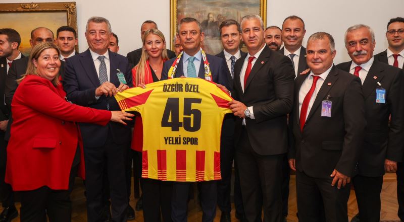 Genel Başkan Özgür özeli ziyaret edenlerin için Yelki Spor Kulübü Başkanı ve Belediye Meclis üyesi olan Ali Turan’da Özgür Özel isminin yazılı olduğu 45 numaralı Yelki Spor forması hediye etti. Çok teşekkür eden Genel Başkan Özgür Özel, “Mücadele ettiği ligde birinci olup yeni başarılar kazanmalarını temenni ediyorum. Artık ben de bir Yelki Spor taraftarıyım” dedi.