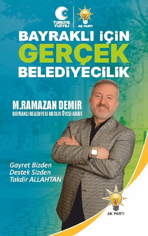 Uzun yıllar Almanya da yaşadıktan sonra Türkiye’ye dönen ve siyasete Anavatan Partisi Gençlik kollarında adım M. Ramazan Demir, uzun süre ara verdiği siyasi hayatına şimdi AK Parti Bayraklı Belediye Meclis Üyesi adayı olarak hizmet etmek için yola çıktı.