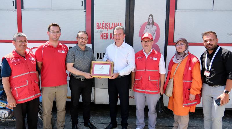 Kızılay Bergama Şubesi Başkanı İsmail Atıcı, Hakan Koştu’ya verdikleri destekler nedeniyle teşekkür etti