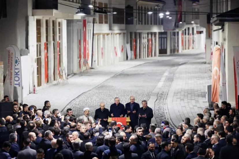 Cumhurbaşkanı Recep Tayyip Erdoğan, 6 Şubat depremlerinde hasar gören ve restorasyonu tamamlanan Hatay’daki tarihî Kurtuluş Caddesi’nin yeniden ışıklandırılması törenine katıldı.