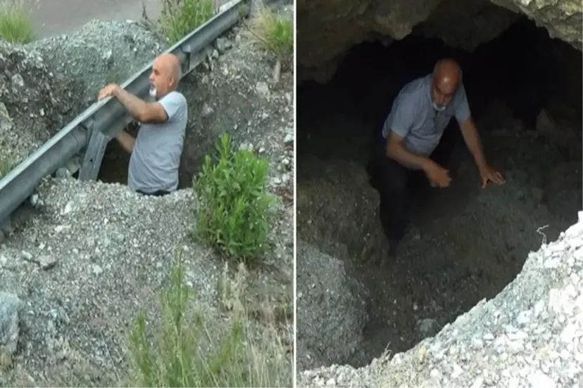 İçerisine girdiğimizde bir mağara mı yoksa geçmiş yıllarda bölgede yapılan maden arama çalışmasına bağlı bir çökme mi anlayamadık. Ancak oluşan çukur günde yüzlerce aracın geçtiği asfalt yolun altında olması nedeniyle tehlike arz ediyor. Bizler elimizden geldiğince yoldan geçen sürücülere dikkatli olmaları konusunda uyarılarda bulunuyoruz. Yetkili birimlerimizin burada inceleme yapmaları ve gerekli önlemleri almalarını istiyoruz" dedi.