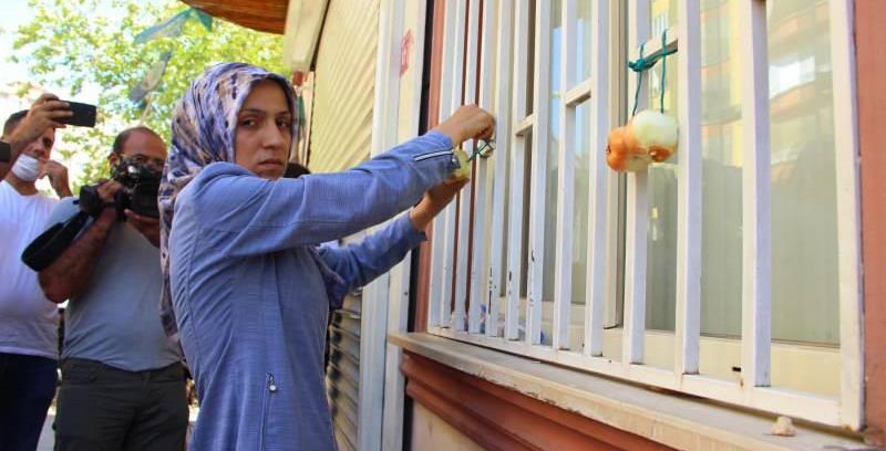Evlat nöbetindeki baba Süleyman Aydın ise, Ayşegül Biçer’e teşekkür ederek, eylemlerinde asla vazgeçmeyeceklerini ve çocukları gelinceye kadar nöbete devam edeceklerini söyledi. Yapılan açıklamanın ardından anne Ayşegül Biçer, evlat nöbetindeki diğer ailelerle birlikte elinde bulunan soğanları HDP il binasının penceresine astı.