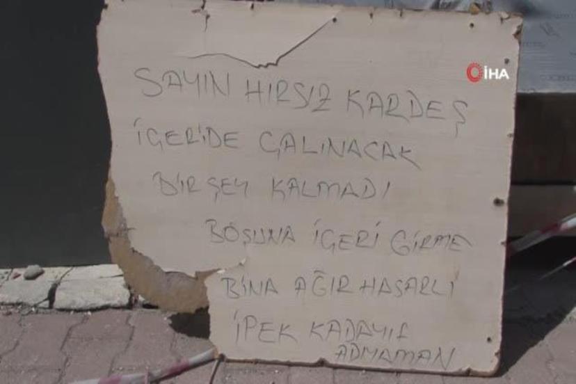 Faruk Yaldız, "Sayın hırsız kardeş, içeride çalınacak bir şey kalmadı. Boşuna içeri girme, bina ağır hasarlı" yazılı bir uyarıda bulundu. Yaldız, hırsızlara yaptığı uyarı yazılarını da bina içerisine ve önüne koydu.