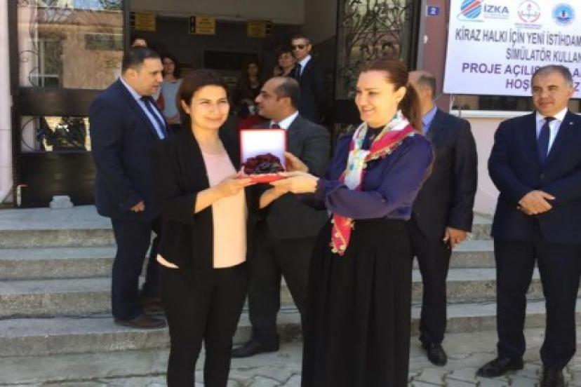 Ak Parti Genel Başkan Yrd. Prof.Dr. Nukhet HOTAR Önce Kiraz Belediyesini Ziyaret etti ardından Halk Eğitim Merkezini ziyaret etti akabinde Ak Parti Genel Başkan Yrd. Prof.Dr. Nukhet HOTAR Kiraz Kaymakamı Mustafa AKGÜL Kiraz Belediye Başkan'ımız Saliha ÖZÇINAR Ak Parti İzmir İl Başkan'ı Bülent DELİCAN ve Kiraz İlçe M.E.Müdürü Osman YAZICI ve H.E.M Müdürü Ş.Emre Akın katılımlarıyla Kiraz Halkı İçin İstihdam Eğitimlerinde Simülatör Kullanım Projesini hep birlikte açtı.