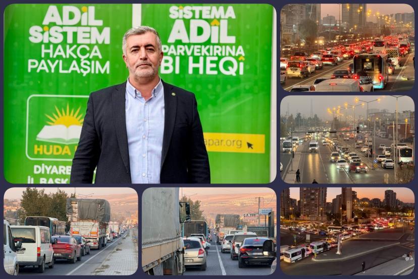 HÜDA PAR Diyarbakır İl Başkanı Zeynul Abidin Gülsever, kentte her geçen gün derinleşen trafik sorununa ilişkin yaptığı açıklamada, özellikle ana arterlerde yaşanan yoğunluğun vatandaşların günlük yaşamını ciddi şekilde etkilediğini belirterek hem karayolu düzenlemeleri hem de hafif raylı sistemin hayata geçirilmesi için yetkililere çağrıda bulundu.