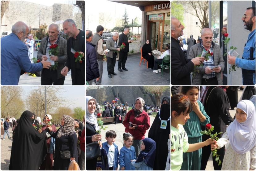 "Peygamber Sevdalıları Vakfı tarafından düzenlenecek olan Mevlid-i Nebi etkinliği için HÜDA PAR Sur İlçe Başkanlığı olarak ilçe merkezimizdeki esnafımızı ziyaret ettik, onları bu güzel etkinliğe gül dağıtarak davet ettik. Allah'ın izniyle bizler de pazar günü mevlit alanında olacağız. Bu vesileyle bütün halkımızı pazar günü yapılacak olan Mevlid-i Nebi etkinliğine davet ediyoruz."