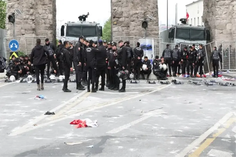İstanbul'da 1 Mayıs Emek ve Dayanışma Günü için getirilen kısıtlama tedbirleri kapsamında Taksim'e girişler yasaklandı. Yasağa rağmen Saraçhane önünde toplanan kalabalık gruba, polis ekipleri uyarıda bulunurken, uyarıları dikkate almayan grup üyeleri ellerindeki bayrakların sopalarıyla bariyerleri aşmaya çalıştı. Polis ekipleri gruplara biber gazı ve plastik mermi kullanarak müdahalede bulundu.
