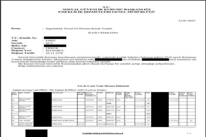 İçişleri Bakanlığından yapılan açıklamada, " Emin Şen'in kamu personeli olmadığı aşağıdaki SGK dökümlerinde çok açık şekilde görülecektir" ifadeleri kullanıldı.