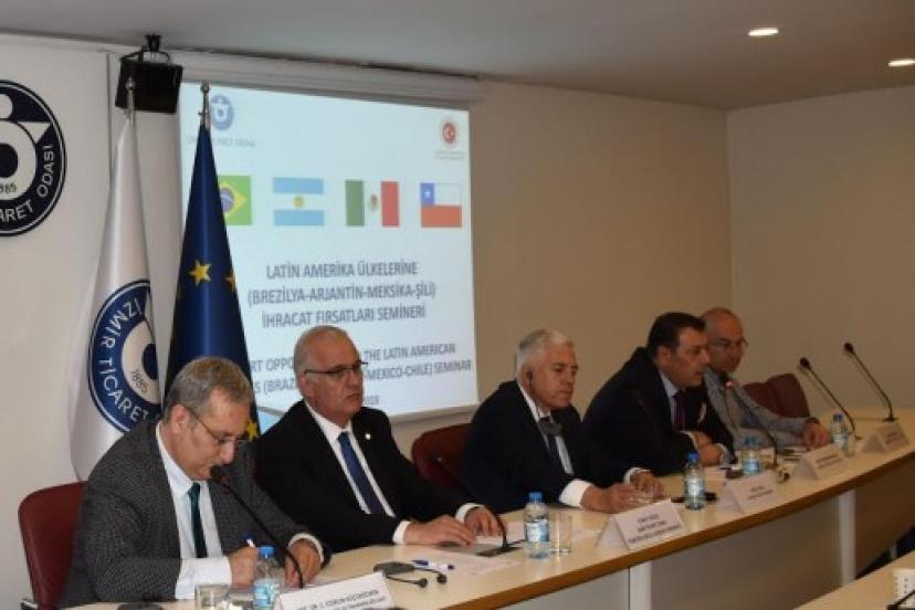 İzmir Ticaret Odası ile Ekonomi Bakanlığı’nın organizasyonuyla, “Latin Amerika Ülkelerine İhracat Fırsatları Semineri’’ gerçekleştirildi. Ekonomi Bakanlığı uzmanlarının, Brezilya, Arjantin, Meksika ve Şili ile ilgili bilgi verdiği seminere, İzmir Ticaret Odası Yönetim Kurulu Başkan Yardımcısı Cüneyt Güleç, Meksika Ticaret Müşaviri Jorge Cruz, Brezilya İzmir Fahri Konsolosu Ali Tamer Bozoklar ve Şili İzmir Fahri Konsolosu Martin Erdemir Sanford katıldı.